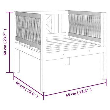 - Materiaal bank: massief acaciahout met olieafwerking en touw