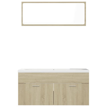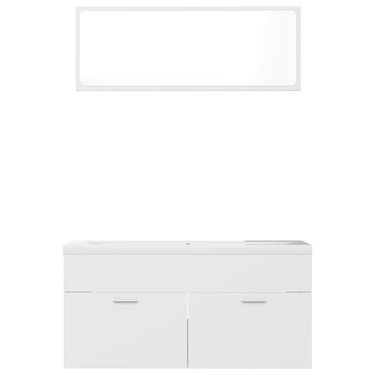 Deze trendy badkamermeubelset, bestaande uit een wastafelkast, een inbouwwastafel en een spiegel, past perfect bij je badkamer of wasruimte. Hij heeft een opvallende, opgeruimde uitstraling.