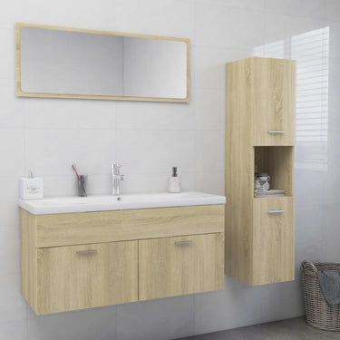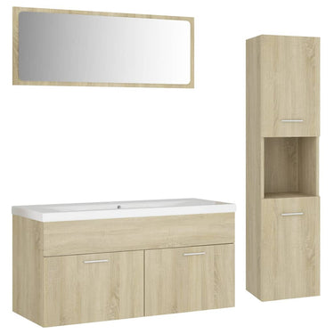 De meubelset bestaat uit een wastafelkast met een wasbak, een hoge kast en een spiegel. De chique wastafelkast heeft 1 vak en past perfect onder je wastafel, waardoor hij heel handig is. De wastafel is gemaakt van keramiek en dient niet alleen als product voor dagelijks gebruik, maar ook als versiering in je leefruimte. Dankzij zijn trendy en eigentijdse ontwerp past deze wastafel beslist in elk interieur. De overloop zorgt ervoor dat de bak nooit kan overlopen. De hoge kast heeft in totaal 5 vakken en 2 deuren, waardoor er voldoende ruimte is om spullen in je badkamer op te bergen. De spiegel geeft je interieur een prachtige uitstraling. Deze badkamerset is gemakkelijk schoon te maken met een vochtige doek.
