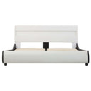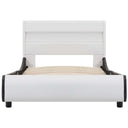 Het bedframe is onderscheidend door zijn eenvoudige maar tijdloze ontwerp en geeft je slaapkamer een vleugje elegante charme. Het gepoedercoat ijzeren frame en de houten lattenbodem dragen bij aan de stevigheid en duurzaamheid van het bed. Het bed is bekleed met duurzaam en gemakkelijk te reinigen kunstleer waardoor het een uitnodigende uitstraling heeft. Bovendien, met een van kleur veranderende LED-strip op het hoofdeinde, vormt het bed een praktische en decoratieve aanvulling op je slaapkamer. Het vermogen, de helderheid en de verschillende kleuren van de LED-lichtstrip kan je aanpassen met de meegeleverde afstandsbediening om zo een verbluffende lichtshow te creëren. Het gestoffeerde bed is geschikt voor een matras van 160 x 200 cm.