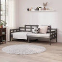 Deze houten slaapbank is ideaal als er onverwachts gasten blijven slapen, terwijl hij overdag een comfortabele zitplaats biedt.