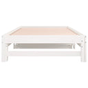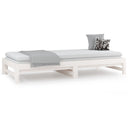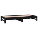- Uitschuifbaar bed: deze houten slaapbank kan overdag als bank gebruikt worden en in de nacht als bed en biedt dus een snelle oplossing wanneer er gasten blijven slapen, terwijl hij tegelijkertijd ruimte bespaart.