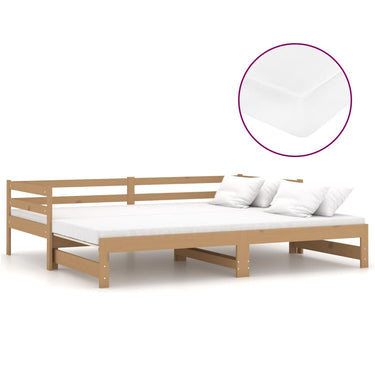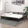 Deze houten slaapbank is ideaal voor het ontvangen van logés, terwijl hij overdag een comfortabele zitplaats biedt.
