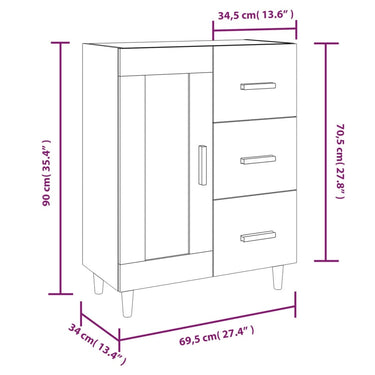- Afmetingen: 69,5 x 34 x 90 cm (B x D x H)