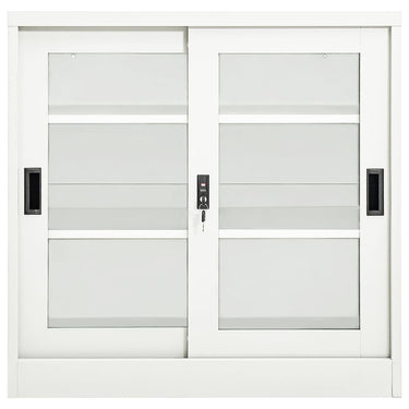 De opbergkast is gemaakt van staal en gehard glas, waardoor hij buitengewoon stevig en duurzaam is. De schuifdeur zorgt voor soepel openen en sluiten. Dankzij 2 verstelbare schappen is de kast geschikt voor het opbergen van ordners van verschillende afmetingen. De archiefkast is ook voorzien van een slot om je persoonlijke documenten tegen ongewenste gasten te beschermen. Roldeurkasten zijn geschikt voor kamers met beperkte ruimte of kleine gangpaden, waar er geen mogelijkheid is om kasten met openslaande deuren te gebruiken.