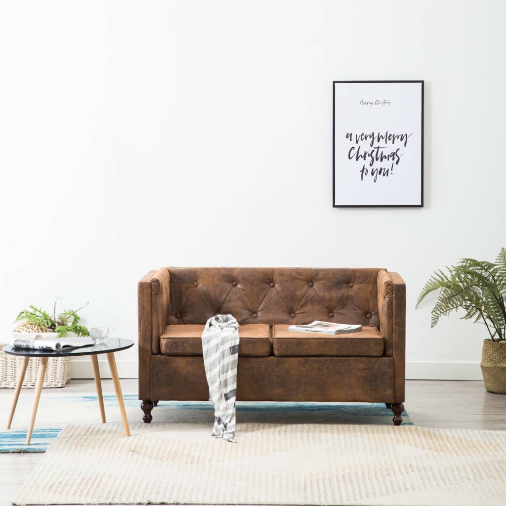 Onze elegante tweezitsbank met suède-look voegt een vleugje luxe, klasse en verfijnde stijl toe aan elke woonkamer-, kantoor- of slaapkamerinrichting.