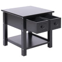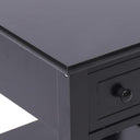 Deze salontafel is gemaakt van paulowniahout en MDF en is duurzaam en stevig. De tafel biedt veel opbergruimte dankzij de 2 lades en het onderste schap. Het stevige tafelblad is ideaal voor het weergeven van decoratieve objecten, fotolijsten en potplanten. Hij is gemakkelijk schoon te maken met een vochtige doek. De bijzettafel is eenvoudig te monteren.