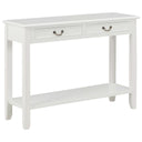De tafel heeft een stevig MDF-blad waarop je decoratieve spullen, zoals fruitmanden en vazen, kunt plaatsen. De massief grenenhouten poten garanderen de stabiliteit en duurzaamheid. Bovendien bieden de 2 lades voldoende ruimte om allerlei kleinere spullen geordend en binnen handbereik te houden. Het schap biedt extra ruimte voor het opbergen van je schoenen en andere voorwerpen.