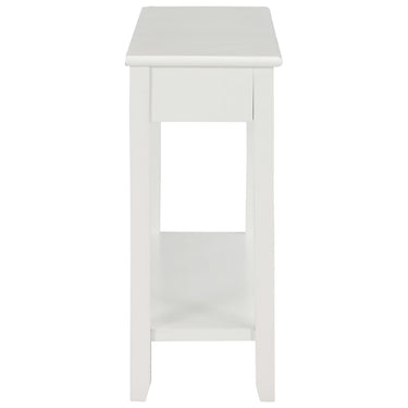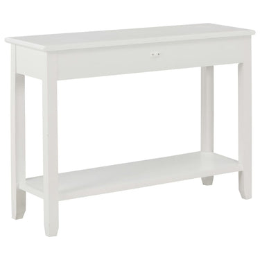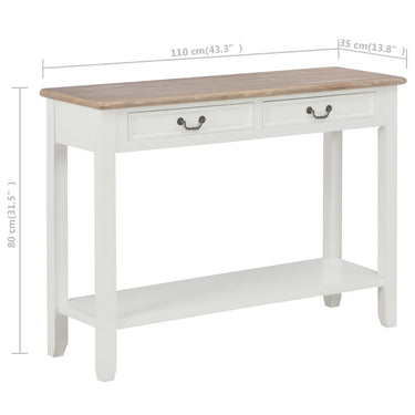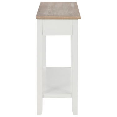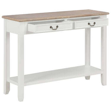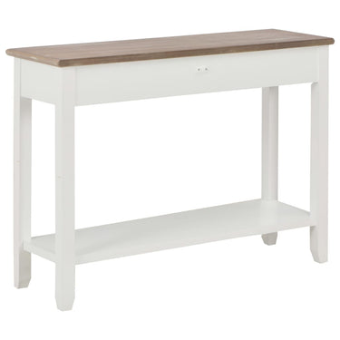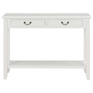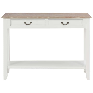 De tafel heeft een stevig MDF-blad waarop je decoratieve spullen, zoals fruitmanden en vazen, kunt plaatsen. De massief grenenhouten poten garanderen de stabiliteit en duurzaamheid. Bovendien bieden de 2 lades voldoende ruimte om allerlei kleinere spullen geordend en binnen handbereik te houden. Het schap biedt extra ruimte voor het opbergen van je schoenen en andere voorwerpen.