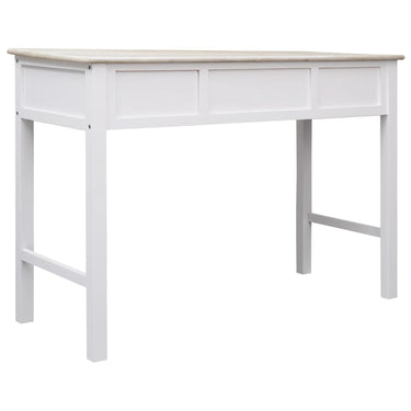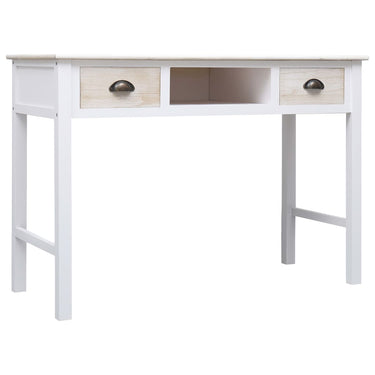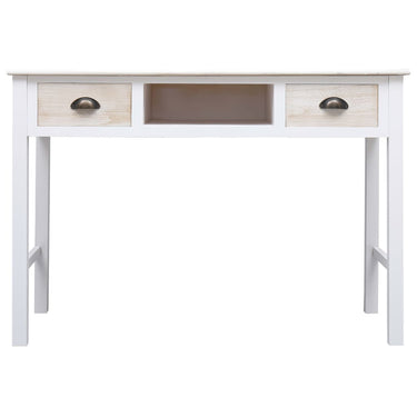 De tafel is gemaakt van hoogwaardig populierenhout en paulowniahout. De sterke poten dragen bij aan de stevige constructie. Bovendien bieden de 2 lades en een open vak voldoende opbergruimte.