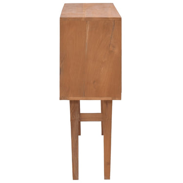 Dit teakhouten meubel is gemaakt van extreem duurzaam hard teakhout dat gewaterd, in de oven gedroogd en vervolgens fijn geschuurd is om het een zeer glad uiterlijk te geven. Teakhout staat bekend om zijn uitzonderlijke sterkte en weerbestendigheid. Teakhout is de perfecte keuze als je een duurzaam meubelstuk wilt aanschaffen. Deze stevige bijzetkast heeft 2 lades en 1 schap, waardoor hij veel opbergruimte biedt.