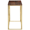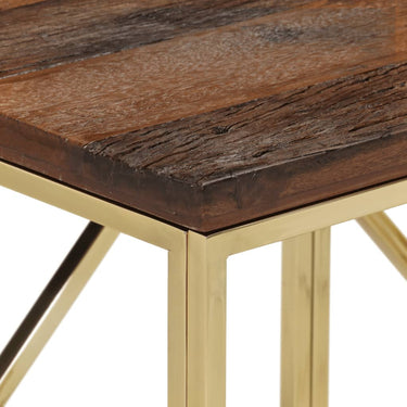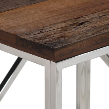 - Blad van massief gerecycled hout: massief gerecycled hout bestaat uit hergebruikt hout, zoals teak, mangohout, grenenhout en beuken. Dit hout is afkomstig van oude gebouwen, zoals fabrieken en schuren, en boten. Omdat elk meubelstuk handgemaakt is en kleuren kunnen verschillen, is elke meubelstuk anders. Het blad van de banktafel biedt voldoende ruimte om vazen, potplanten en andere decoratieve items op te plaatsen.