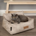 Je huisdiervrienden slapen graag op een warme en zachte ondergrond. Het hondenbed is gemaakt van trendy eco-suede buitenstof, en heeft een 100% polyester stevig gevuld middenkussen waarop je pluizige kat of kleine hond veilig en comfortabel een dutje kan doen. Deze huisdierenmand heeft een contrasterend en omkeerbaar middenkussen, diepe zijwanden en een hoge achterwand wat zorgt voor ultiem comfort voor je trouwe viervoeter. De afneembare buitenhoes kan in de wasmachine op 30 graden gewassen worden.
