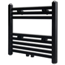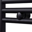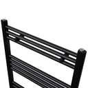 Dankzij het circulatiesysteem met heet water, wat geen elektriciteit verbruikt, drogen je handdoeken erg snel. De radiator heeft 18 stalen buizen met een diameter van 22 mm en is zwart geschilderd. De buizen zijn extra dik en leveren een hoge warmteafgifte. Aan de boven- en onderzijde zitten waterverbindingen voor een optimale watercirculatie.