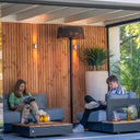 Deze terrasverwarmer, bestaande uit een halogeen verwarmingselement, zorgt voor een aangename warmte en zorgt dat je binnen 5 seconden maximale warmte-uitvoer zal ervaren. Met de afstandsbediening of de gebruiksvriendelijke soft touch-technologie kun je het vermogen instellen op 800, 1.000 of 1.800 Watt. Hij is zeer duurzaam en heeft een geschatte levensduur van 8.000 uur.