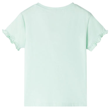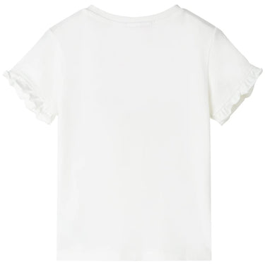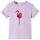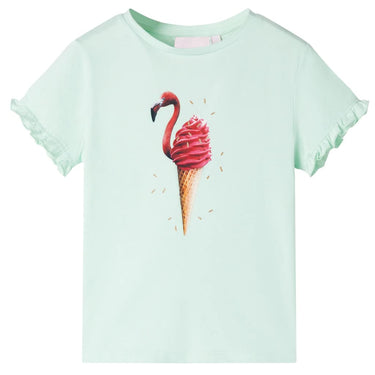 Dit kindershirt heeft korte mouwen met ruches, een ronde halslijn en een recht model. Op dit kindershirt staat een flamingo-ijsje afgebeeld, waardoor hij een blikvanger met een interessante uitstraling is. Het kindershirt met korte mouwen is gemaakt van 95% katoen en 5% elastaan, waardoor hij comfortabel en ademend is.