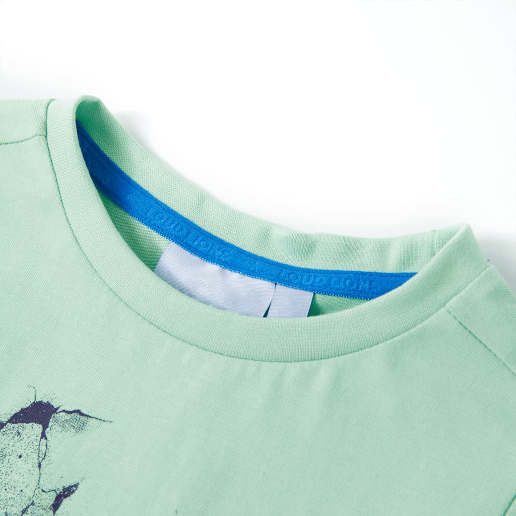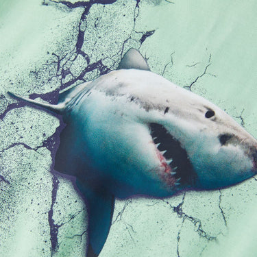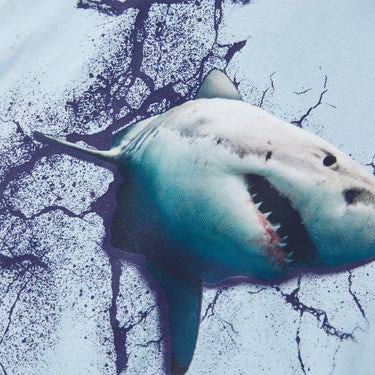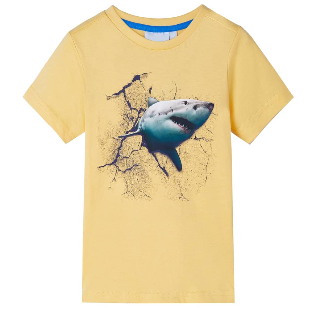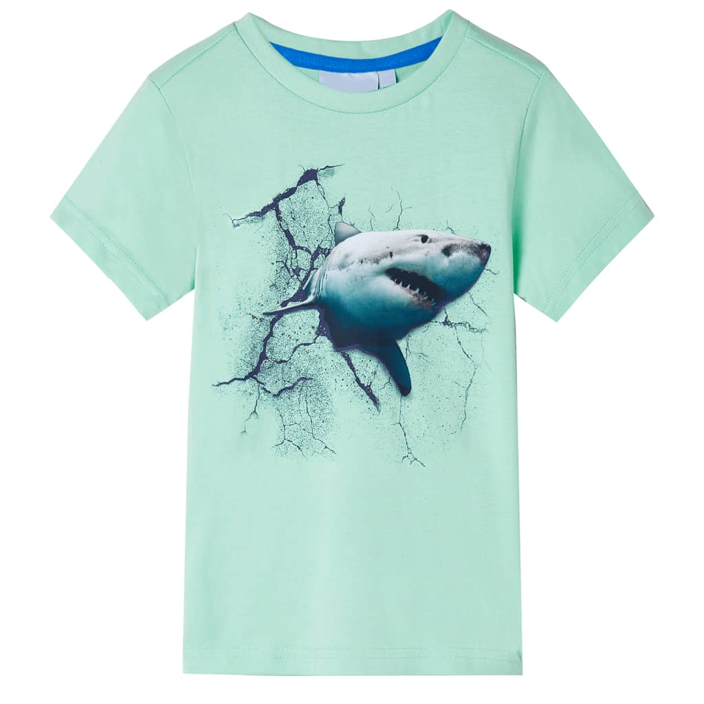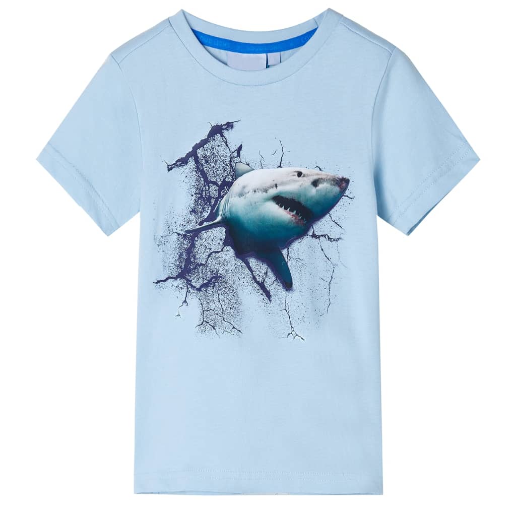Dit kindershirt heeft korte mouwen, een ronde halslijn en een recht model. Op dit kindershirt staat een grote haai afgebeeld. Het kindershirt met korte mouwen is gemaakt van 100% katoen, waardoor het zacht en comfortabel aanvoelt.