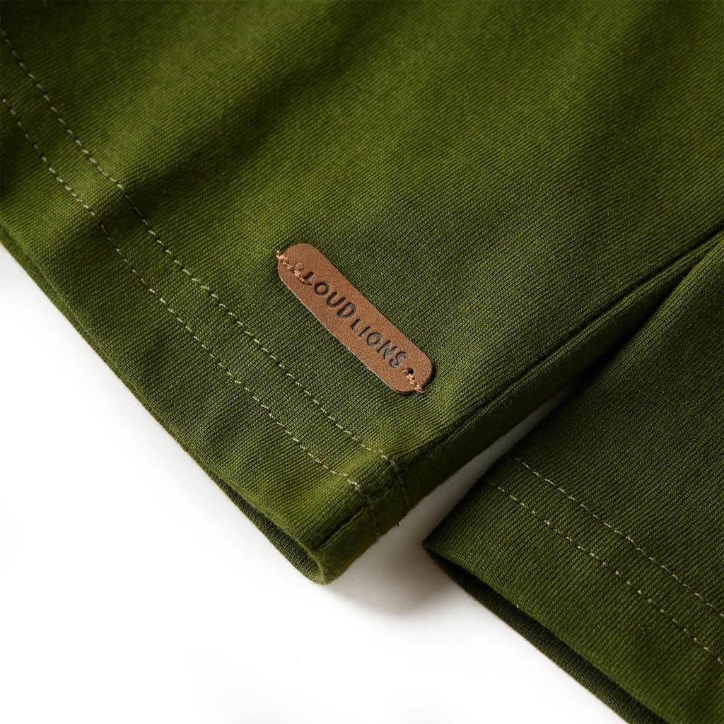 Dit t-shirt heeft lange mouwen, een ronde halslijn en een recht model. Op dit donkerkakikleurige kindershirt staat leuke aapjes afgebeeld. Het kindershirt met lange mouwen is gemaakt van 100% katoen dat met een silicone- en enzymwassing is behandeld, zodat hij zacht en comfortabel aanvoelt.