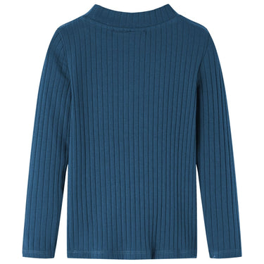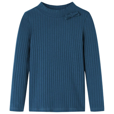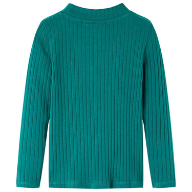 Dit geribde kindershirt heeft lange mouwen, een halve col en een recht model. Dit donkergroene t-shirt heeft een strikje op de halslijn. Het kindershirt met lange mouwen is gemaakt van zacht materiaal met 95% katoen en 5% elastaan voor extra comfort en ademend vermogen.