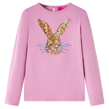 Dit kindershirt heeft lange mouwen, een ronde halslijn en een recht model. Op dit rozebruine kindershirt staat een groot, glimmend konijn afgebeeld. Het kindershirt met lange mouwen is gemaakt van zacht materiaal met 95% katoen en 5% elastaan voor extra comfort en ademend vermogen.