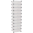 De schoenenkast is gemaakt van hoogwaardige kunststof panelen met stalen frames om ze stevig en duurzaam te maken. Dankzij het kunststof materiaal is het schoenenrek makkelijk schoon te maken. De kast kan snel en eenvoudig worden opgebouwd met de meegeleverde kunststof hoekstukken. De kast is lichtgewicht en kan dus gemakkelijk worden verplaatst.