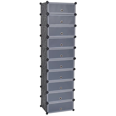 Deze stijlvolle en functionele schoenenkast heeft 10 vakken, ieder met een deurtje, en houdt al je schoenen schoon en georganiseerd.