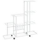 Deze bloemenstandaard is gemaakt van metaal, wat stevig en duurzaam is en jarenlang meegaat. Bovendien biedt dit plantenrek voldoende ruimte voor het uitstallen van je mooie planten. Ook maken de wielen het makkelijk om de standaard verplaatsen. Verder is het rek eenvoudig schoon te maken met een vochtige doek.