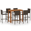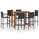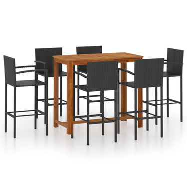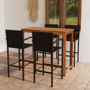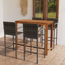 De tafel is gemaakt van massief acaciahout met een olieafwerking, waardoor hij stabiel, duurzaam en gemakkelijk te onderhouden is. De barkruk heeft een gepoedercoat stalen frame bedekt met weerbestendig PE-rattan waardoor hij stevig en gemakkelijk schoon te maken is.