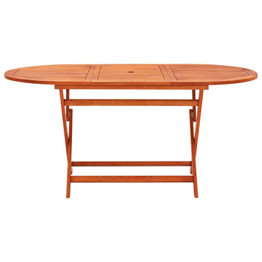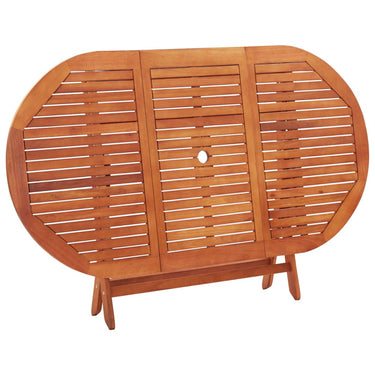 De eethoek is gemaakt van eucalyptushout dat weerbestendig en duurzaam is, wat zorgt voor jarenlang gebruik. Dankzij de olieafwerking is het oppervlak makkelijk schoon te vegen met een vochtige doek. Daarnaast heeft het tafelblad een gat in het midden voor een parasol. De tafel en stoelen kunnen worden ingeklapt om ruimte te besparen wanneer ze niet in gebruik zijn.
