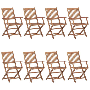 Deze tuinstoelen zijn gemaakt van massief acaciahout waardoor ze stevig en stabiel zijn. Massief acaciahout heeft de kracht om veel gewicht te dragen en is bestand tegen slijtage. Deze buitenstoelen bieden jarenlange ontspanning. Bovendien kunnen de stoelen worden ingeklapt om ruimte te besparen wanneer ze niet worden gebruikt. De meegeleverde kussens bieden extra comfort. Elk kussen heeft twee touwtjes om het stevig op de stoel te bevestigen.