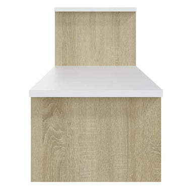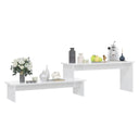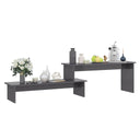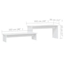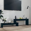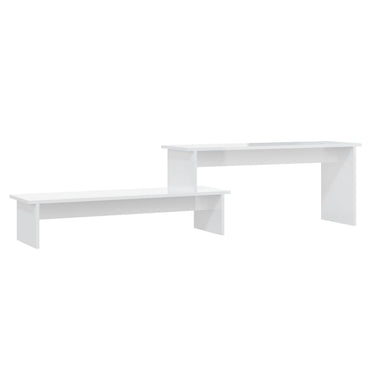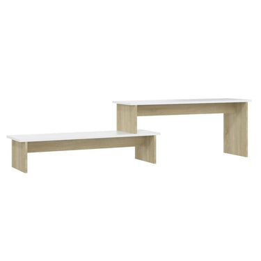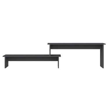 De tv-standaard is ontworpen met 1 onderschap en 1 bovenschap, en de totale lengte is verstelbaar. Je kan het bovenste schap naar wens plaatsen. Het meubel is gemakkelijk schoon te maken met een vochtige doek.