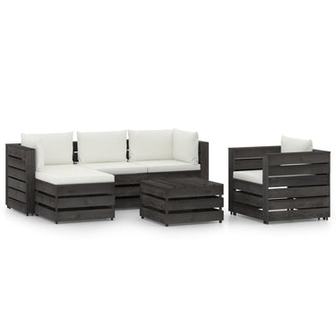 6-delige Loungeset met kussens grijs geïmpregneerd hout