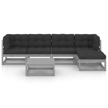 6-tlg. Garten-Lounge-Set Grau Massivholz Kiefer