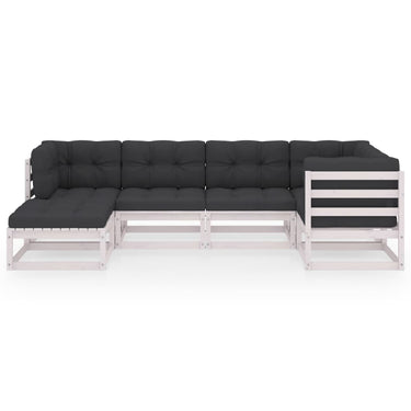 6-tlg. Garten-Lounge-Set Weiß Massivholz Kiefer