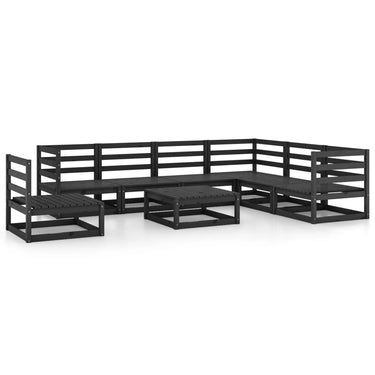 8-tlg. Garten-Lounge-Set mit Kissen Schwarz Massivholz Kiefer