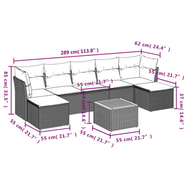 8-tlg. Garten-Sofagarnitur mit Kissen Schwarz Poly Rattan