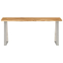 Diese Bank mit Sitzfläche aus Akazien-Massivholz und stabilen U-Beinen ist eine tolle Ergänzung für dein Esszimmer, dein Wohnzimmer oder deinen Flur. Akazien-Massivholz: Die Sitzbank ist aus massivem Akazienholz gefertigt. Akazienholz ist ein schönes Naturmaterial; es ist ein tropisches Hartholz, das dicht, robust und langlebig ist.Baumkante: Die Baumkante, die der natürlichen Form des Baumes folgt, erhöht die Schönheit der Flurbank.Stabiles Gestell: Die U-förmigen, pulverbeschichteten Stahlbeine verleihen deiner Einrichtung einen industriellen Stil und gewährleisten gleichzeitig die Stabilität der Essbank. Gut zu wissen:Jedes Stück ist ein Unikat, das in Farbe und Maserung variiert. Die Lieferung erfolgt in zufälliger Reihenfolge, wodurch die Exklusivität und Individualität deines Produkts gewährleistet wird.