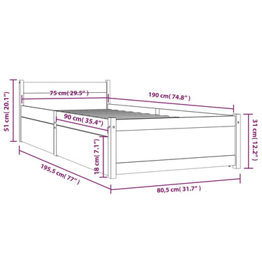 - Geschikte matrasmaat: 75 x 190 cm (B x L) (matras is niet inbegrepen)