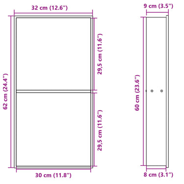 - Gesamtabmessungen: 32 x 62 x 9 cm (B x T x H)