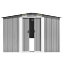 Der Geräteschuppen aus Metall eignet sich perfekt für die Aufbewahrung einer Vielzahl von Werkzeugen, Geräten, Gartenmöbeln usw. Der Gartenschuppen bietet nicht nur Schutz vor Staub und Schmutz, sondern auch vor Wind, Sonne und Niederschlag. Dieses Gerätehaus hat sowohl vorne als auch hinten Lüftungsgitter, die eine hervorragende Belüftung gewährleisten. Seine Doppel-Schiebetüren an der Vorderseite ermöglichen einen einfachen Ein- und Ausstieg. Dank der verzinkten Stahlkonstruktion und der pulverbeschichteten Oberfläche ist der Geräteschuppen langlebig und robust. Der Garten-Lagerschuppen muss zusammengebaut werden.