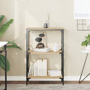 Dieses Bücherregal bietet eine ideale Lösung für die ordentliche Aufbewahrung deiner Bücher und ist eine dekorative und zugleich praktische Ergänzung zu deinem Zuhause. Langlebiges Material: Holzwerkstoff ist ein Material von außergewöhnlicher Qualität mit glatter Oberfläche, das sich durch Festigkeit, Stabilität und Feuchtigkeitsbeständigkeit auszeichnet. Aus Holzwerkstoff gefertigt, lässt sich das Bücherregal einfach reinigen.Reichlich Stauraum: Das Bücherregal bietet viel Stauraum, um deine Zeitschriften, Bücher, Dekoartikel und andere Alltagssachen ordentlich und griffbereit aufzubewahren.Verstellbare Beine: Die vier verstellbaren Beine mit Kunststoffkappen sorgen für eine stabile Positionierung des Regals, selbst auf unebenem Boden.Metallrahmen: Der Metallrahmen verleiht deinem Interieur eine industrielle Note und gewährleistet gleichzeitig Haltbarkeit und Stabilität. Achtung:Um ein Umkippen zu vermeiden, sollte dieses Produkt mit der mitgelieferten Wandhalterung gesichert werden. Gut zu wissen:Schrauben und Dübel sind für die Befestigung an der Wand nicht im Lieferumfang enthalten. Wir empfehlen, speziell für deine Wände geeignete Schrauben und Dübel zu finden und zu verwenden. Im Zweifelsfall wende dich an einen Fachmann. Bitte lese und befolge jeden Schritt der Anweisungen.