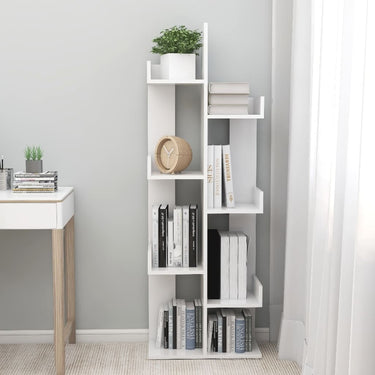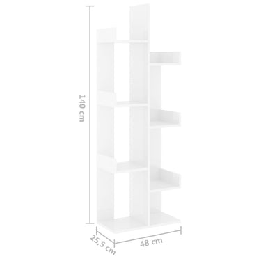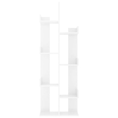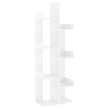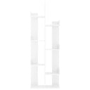 Platzieren Sie all Ihre Schätze in den geräumigen Fächern dieses Bücherregals und lassen Sie diesen Baum erblühen! Ihnen stehen 8 Fächer zur Verfügung, um Bücher, CDs, Zeitschriften, Dekorationen oder Topfpflanzen ordentlich zu verstauen. Dieses Bücherregal ist robust und stabil. Die seitlichen Wände und die 2 schmalen Platten auf der Rückseite schützen Bücher vor dem Herunterfallen. Dank seiner kompakten Größe nimmt das Regal wenig Platz ein. So können Sie auch in kleinen Wohnzimmern, Schlafzimmern oder Büros eine gemütliche Leseecke einrichten. Außerdem lässt sich das Bücherregal leicht mit einem feuchten Tuch reinigen.
