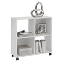 De stijlvolle, mobiele kast is gemaakt van met melamine bedekt spaanplaat in een ingetogen witte kleur die bij vrijwel elke interieurstijl past.