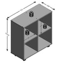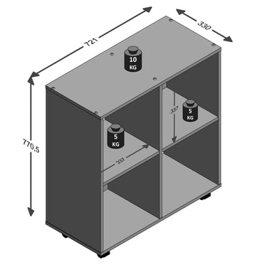 De eigentijdse, vrijstaande kast van FMD is een veelzijdige opslagkast bestaande uit 4 vakken van gelijke grootte.