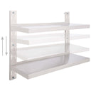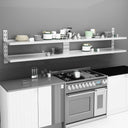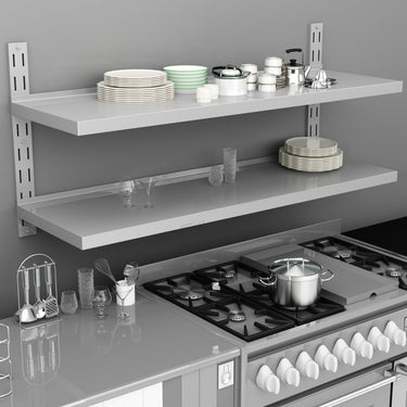 Dieses Set aus 2 Edelstahl-Regalen mit je 2 Böden ist sowohl stilvoll als auch praktisch. Es ist eine gute Wahl für alle, die zusätzlichen Stauraum in der Küche benötigen. Es bietet den perfekten Platz für Teller, Geschirr und verschiedene andere Küchenutensilien. Das Wandregal besteht aus Edelstahl und ist daher äußerst langlebig, stabil und pflegeleicht, was es zur perfekten Wahl für Bereiche macht, in denen ein hoher Hygienestandard erforderlich ist. Die gesamte Tragfähigkeit des Regals beträgt 80 kg. Montagezubehör ist im Lieferumfang enthalten.