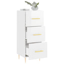 Dieses moderne Sideboard im zeitlosen Look ist eine hervorragende Ergänzung für dein Zuhause. Langlebiges Material: Holzwerkstoff ist ein Material von außergewöhnlicher Qualität mit glatter Oberfläche, das sich durch Festigkeit, Stabilität und Feuchtigkeitsbeständigkeit auszeichnet. Metallbeine: Die Metallbeine verleihen Ihrem Interieur eine moderne und angenehme Note und sorgen gleichzeitig für Stabilität. Viel Stauraum: Der Beistellschrank ist mit 3 Schubladen ausgestattet, um verschiedene Sachen ordentlich und griffbereit aufzubewahren. Stabile und robuste Platte: Die Oberplatte dieses Schranks eignet sich perfekt zum Präsentieren von Dekorationsgegenständen, Bilderrahmen und Topfpflanzen. Achtung:Um ein Umkippen zu vermeiden, sollte dieses Produkt mit der mitgelieferten Wandhalterung gesichert werden.