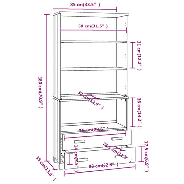 - Gesamtabmessungen: 85 x 35 x 180 cm (B x T x H)