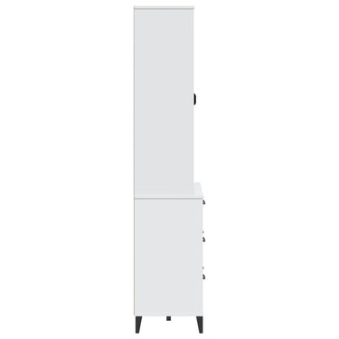 Auf der Suche nach einem stilvollen Highboard? Dieser Schrank verleiht deiner Einrichtung einen eleganten Charme! Massives Kiefernholz: Massives Kiefernholz ist ein schönes Naturmaterial. Kiefernholz weist eine gerade Maserung auf und die Aststellen verleihen dem Material seine charakteristische, rustikale Optik. Aus massivem Kiefernholz gefertigt, ist der Schrank langlebig und robust.Viel Stauraum: Das Sideboard bietet reichlich Stauraum, um die verschiedenen Dinge des täglichen Bedarfs gut organisiert und in Reichweite aufzubewahren.Glas-Türen: Die Türen dieses Holzschranks sind dank des gehärteten, polierten Glases besonders robust und sicher in der Verwendung. Außerdem kannst du in das Innere des Buffet-Aufsatzes sehen und den Inhalt erkennen. Deine Sachen werden schön präsentiert..Praktische Griffe: Der Vitrinenschrank ist mit Schubladen und Türen mit Griffen ausgestattet, die den schnellen Zugriff auf den Inhalt erleichtern und gleichzeitig zur ansprechenden Optik des Schranks beitragen. Achtung:Um ein Umkippen zu vermeiden, sollte dieses Produkt mit der mitgelieferten Wandhalterung gesichert werden.