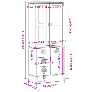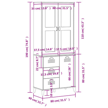Highboard VIKEN Schwarz 80x40x190 cm Massivholz Kiefer