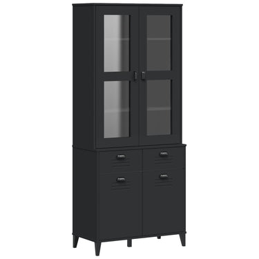 Auf der Suche nach einem stilvollen Highboard? Dieser Schrank verleiht deiner Einrichtung einen eleganten Charme! Massives Kiefernholz: Massives Kiefernholz ist ein schönes Naturmaterial. Kiefernholz weist eine gerade Maserung auf und die Aststellen verleihen dem Material seine charakteristische, rustikale Optik. Aus massivem Kiefernholz gefertigt, ist der Schrank langlebig und robust.Viel Stauraum: Das Sideboard bietet reichlich Stauraum, um die verschiedenen Dinge des täglichen Bedarfs gut organisiert und in Reichweite aufzubewahren.Glas-Türen: Die Türen dieses Holzschranks sind dank des gehärteten, polierten Glases besonders robust und sicher in der Verwendung. Außerdem kannst du in das Innere des Buffet-Aufsatzes sehen und den Inhalt erkennen. Deine Sachen werden schön präsentiert..Praktische Griffe: Der Vitrinenschrank ist mit Schubladen und Türen mit Griffen ausgestattet, die den schnellen Zugriff auf den Inhalt erleichtern und gleichzeitig zur ansprechenden Optik des Schranks beitragen. Achtung:Um ein Umkippen zu vermeiden, sollte dieses Produkt mit der mitgelieferten Wandhalterung gesichert werden.